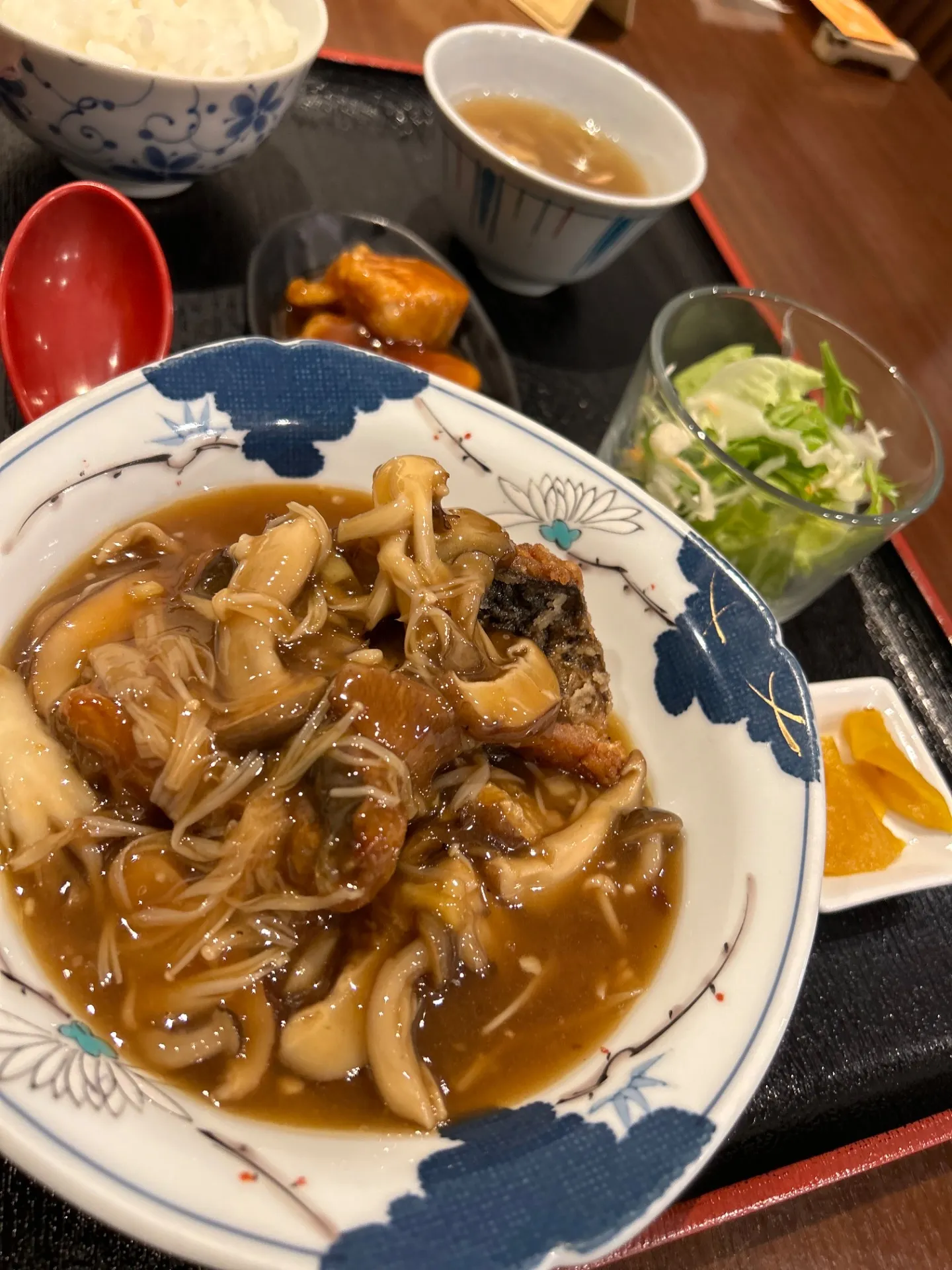 今週の週替わりランチのご紹介です。『鶏の唐揚げと厚揚げのキノコあんかけ』11月3日から9日までやってます。ご来店お待ちしております!!