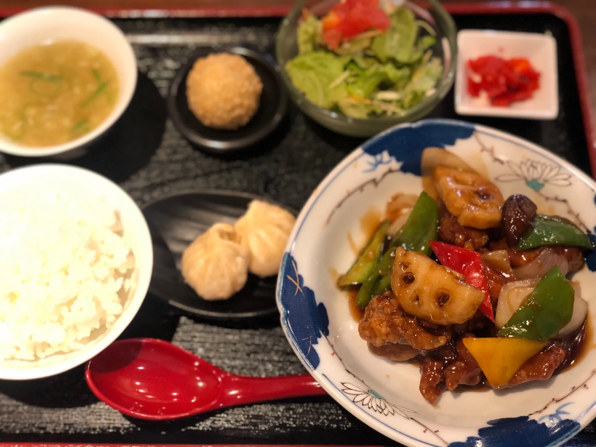 今週の週替わりランチのご紹介です。『糖醋鶏球』鶏の唐揚げと野菜の黒酢あん1月12日から18日までやってます。ご来店お待ちしております!!